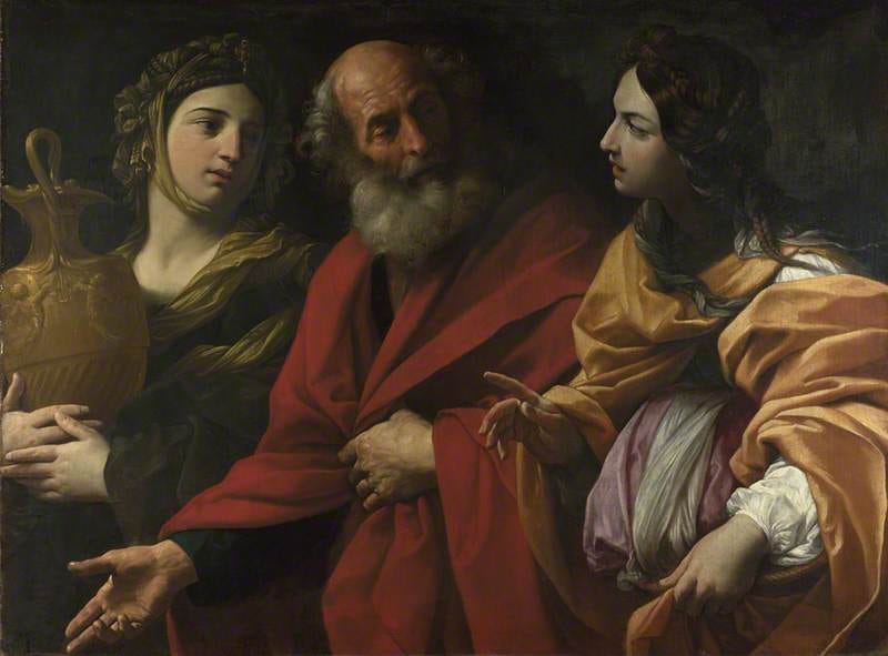 Peter Paul Rubens, "The Flight of Lot and His Family from Sodom," (ca. 1613-1615) in the Ringling Museum, Sarasota, Florida. In each work, one daughter is visibly pregnant even as they flee the city.